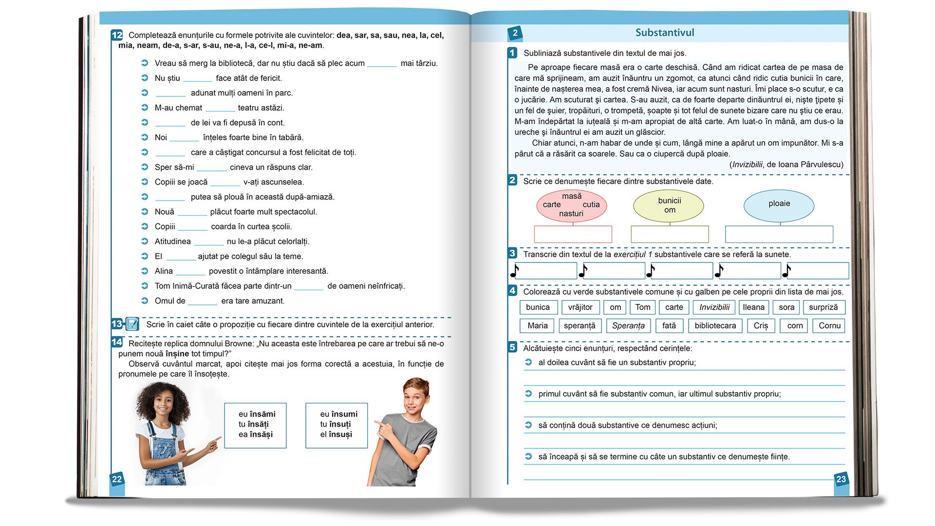 - Limba și literatura română pentru clasa a IV-a - caiet de lucru (152 pagini color);