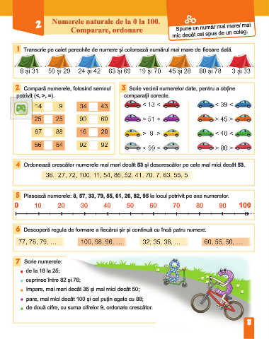 2 Numerele naturale de la 0 la 100. Spune un număr mai mare/ mai