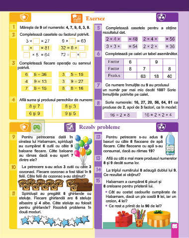 1 Mărește de 9 ori numerele: 4, 7, 9, 5, 3, 8. 5 Completează casetele pentru a obține