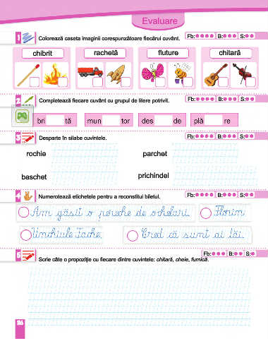 4 Numerotează etichetele pentru a reconstitui biletul. Fb: B: S: