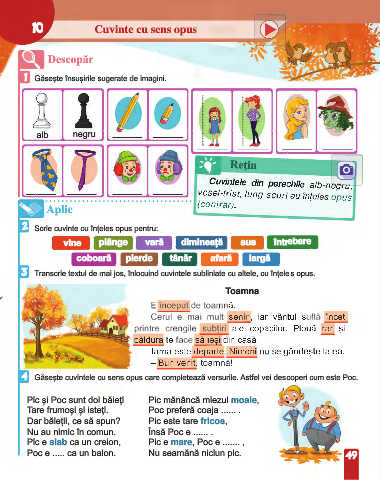 4 Găsește cuvintele cu sens opus care completează versurile. Astfel vei descoperi cum este Poc.