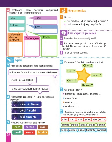 2 Realizează harta povestirii completând Argumentez